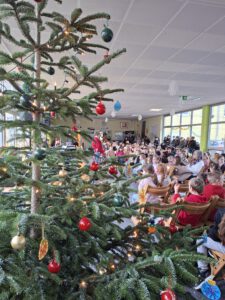 Die Grund- und Realschule Plus Gerolstein veranstaltete am Mittwoch, den 17.12.2025 vorweihnachtliche Stimmung beim gemeinschaftlichen Singen in der geschmückten Eingangshalle. Alle Klassen waren unter der