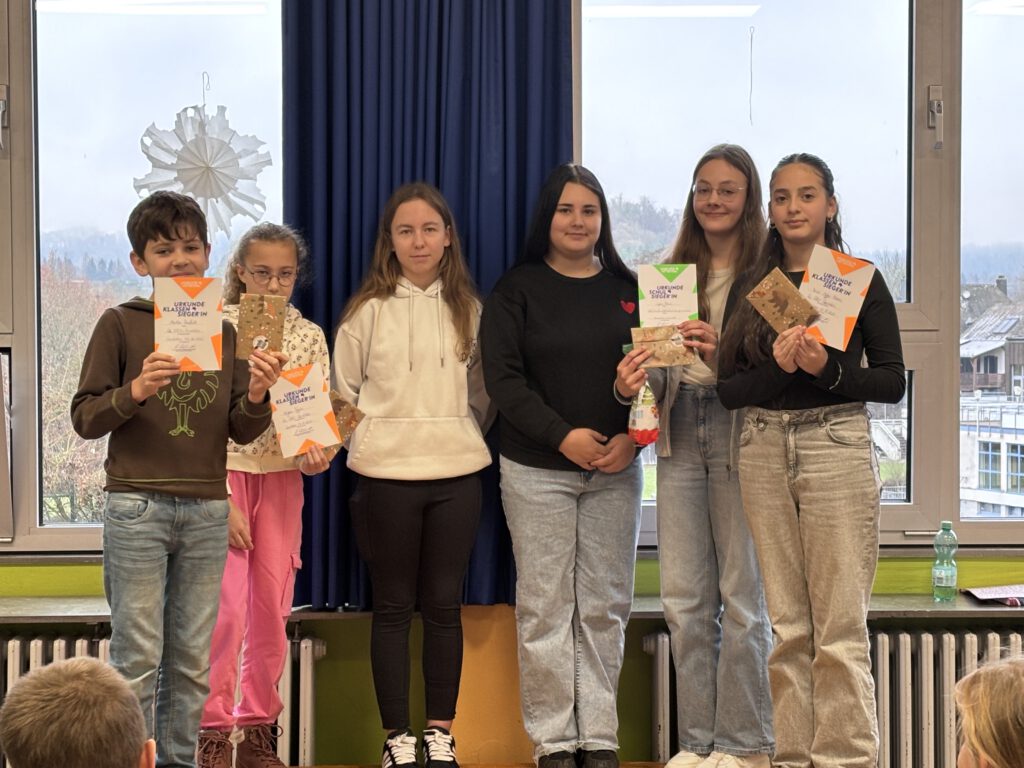 Die KlassensiegerInnen in diesem Jahr waren Uljana Simon und Masal Defne Yilmaz aus der Klasse 6a sowie Marlon Kaufhold und Lynn Fikel aus der Klasse 6b. Diese vier SchülerInnen nahmen an der nächsten Wettbewerbsphase teil, bei welcher der Schulsieger ermittelt wurde.